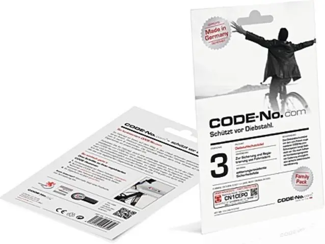 Produktbeschreibung: Schützen Sie Ihr Fahrrad effektiv vor Diebstahl mit dem innovativen CODE-NO.com Schutzsystem. Diese zum Patent angemeldeten Diebstahlschutzlabel sind einfach zu handhaben und ermöglichen eine eindeutige Identifizierung Ihres Fahrrads. Mit der internationalen Velo Diebstahlcheck-Funktion wird Hehlerware sofort erkannt, wodurch ein Weiterverkauf nahezu unmöglich wird.